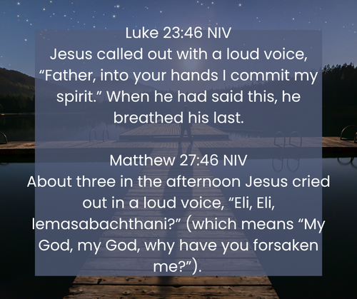 Dear Father, thank you for Jesus’ example. Please strengthen me and give me that kind of trust that stays faithful no matter what’s happening around me, the kind of trust that believes that you are faithful even when I can’t see or feel you. Father, into your hands I commit my spirit.