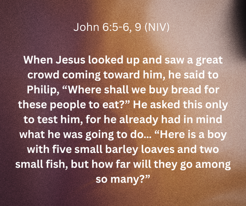 Dear Father, thank you that you care when we’re in need, and that I don’t have to come up with a solution, because you already have one. Help me to take all my needs to you. Help me also to surrender all my means and methods to you, so you can use whatever you want, however you want. When things seem impossible, give me spiritual insight. Please help me to remember that you have power to multiply, and you have promised to provide.