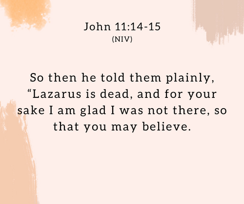 - Why was Jesus glad that he wasn’t there when Lazarus died? What does this teach me about his priorities?